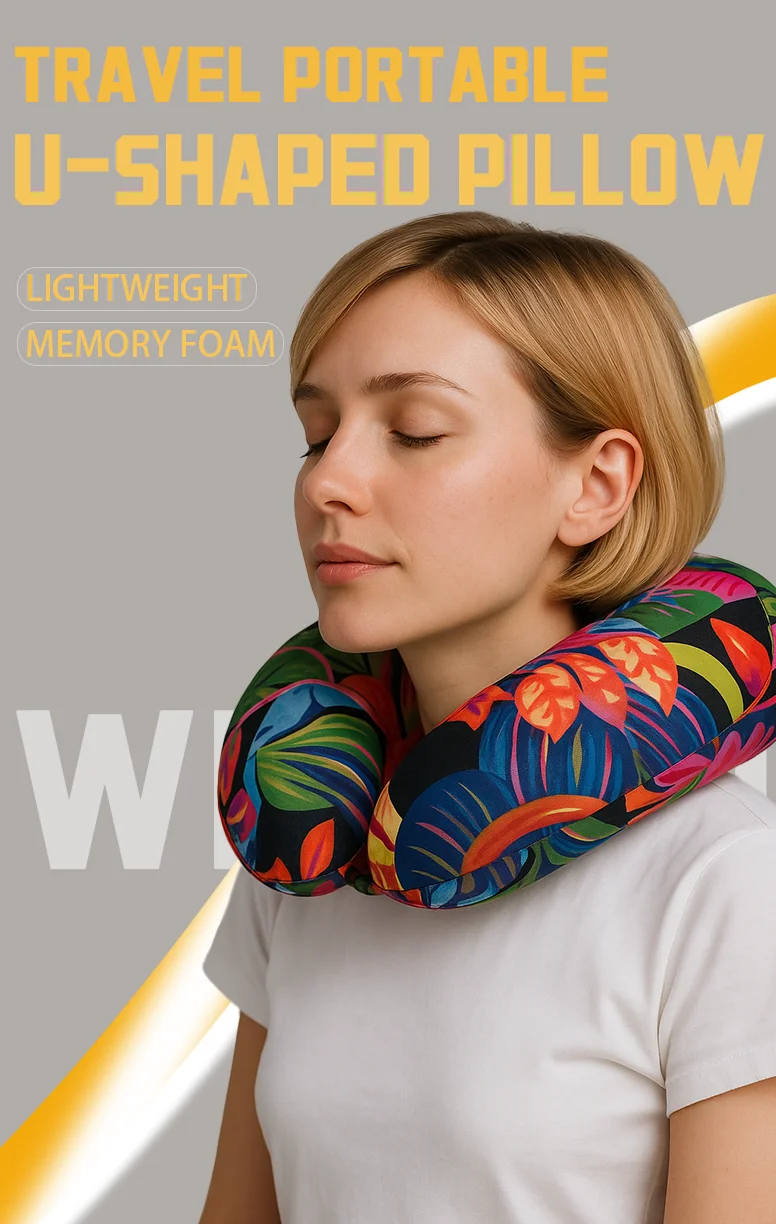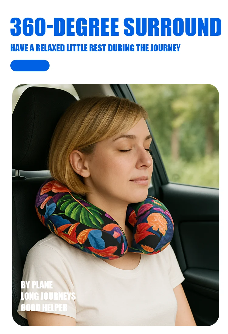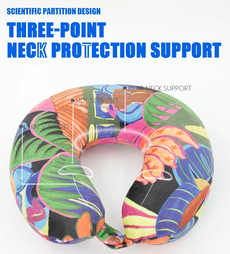 Gedrukte OEM U-vormige Reis Geheue-skum Nek Kussing Steun Hoofrus Vliegtuig Kussing Nekkoord Kristal Fluweel U-vormige Kussing | Nekkussing | EACHONE