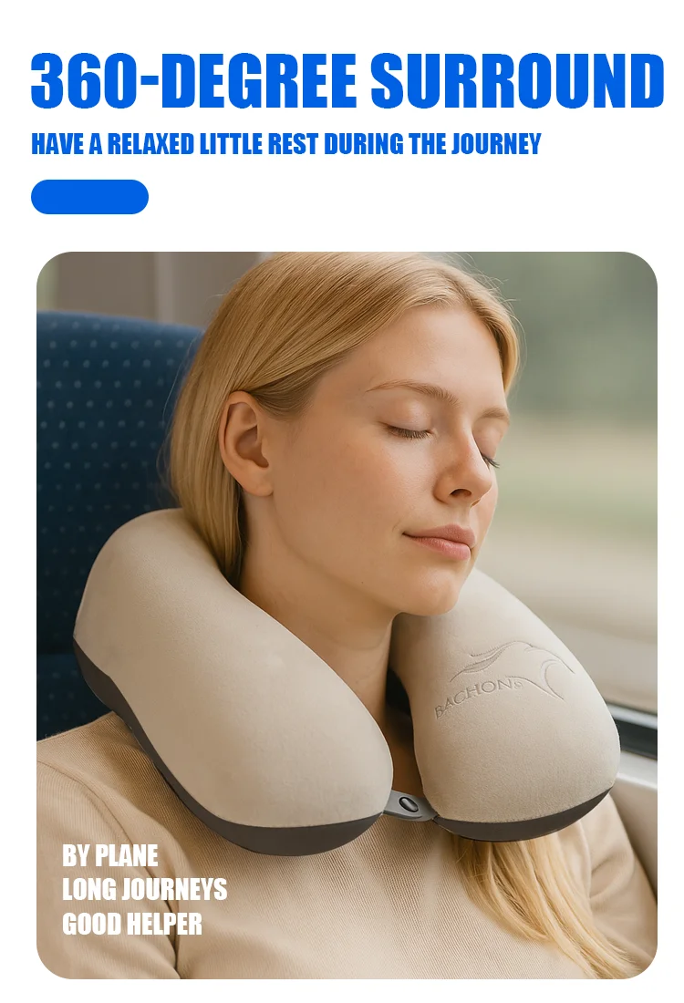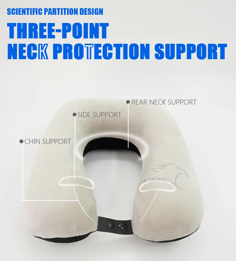 Cuscino cervicale grigio premium a forma di U con logo personalizzato ricamato, comodo cuscino relax con massaggio cervicale per uso in ufficio