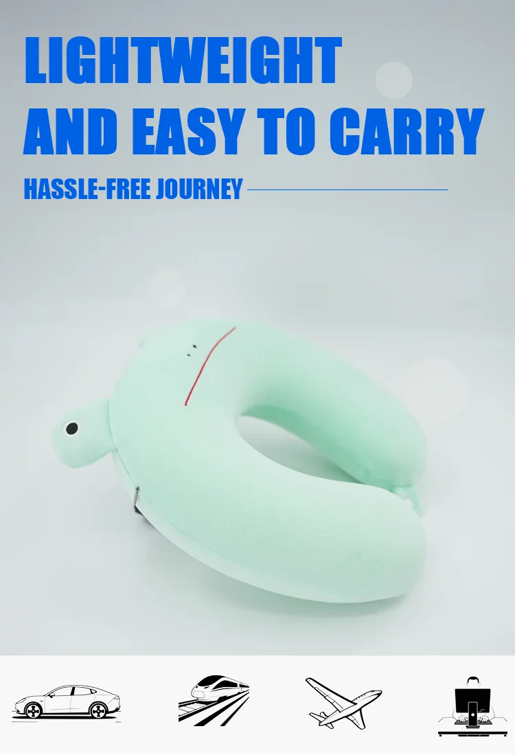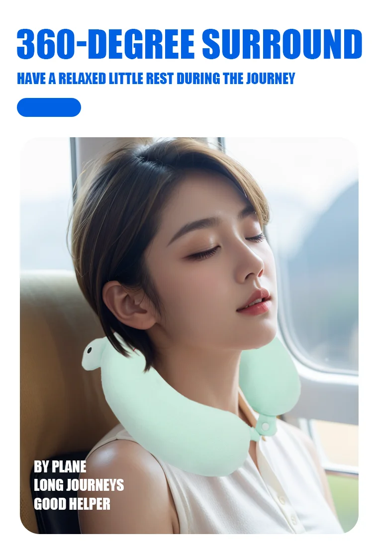 Cuscino da viaggio a forma di U con supporto cervicale in schiuma a memoria di forma e funzione massaggiante indossabile per viaggi in aereo e in auto | Cuscino per il collo | EACHONE