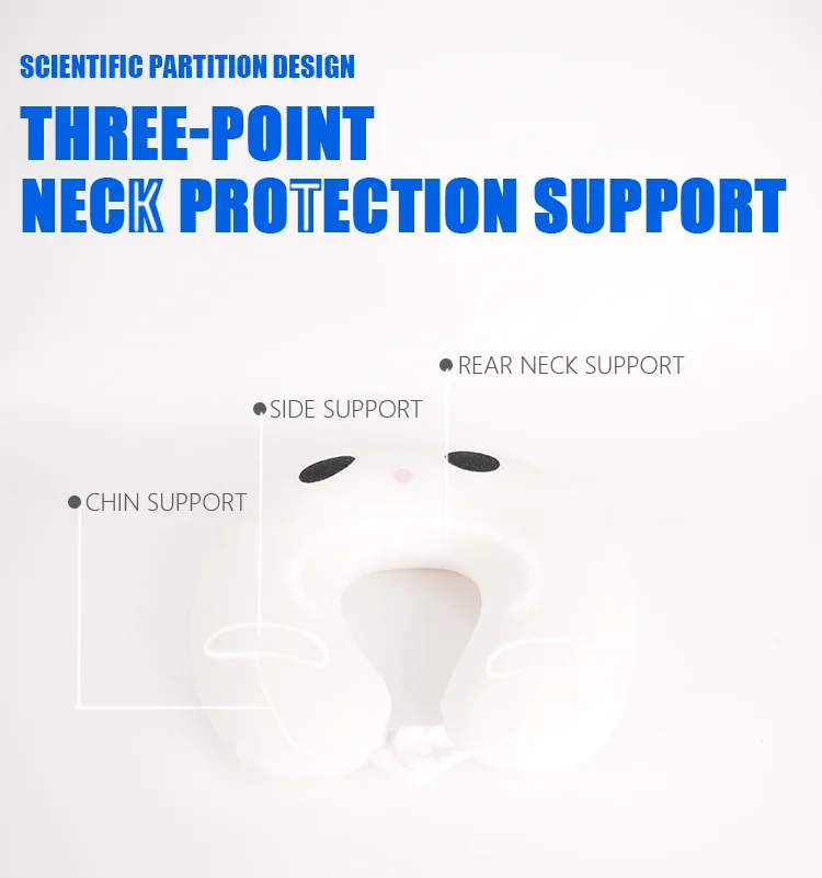 Biała poduszka podróżna w kształcie pandy z pamięciowej pianki w kształcie litery U, przenośna poduszka pod szyję do długich podróży samochodem i samolotem, ergonomiczna opaska na głowę